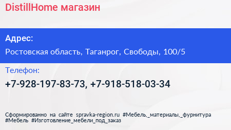 DistillHome, магазин по адресу Ростовская область, Таганрог, Свободы, 100/5 в дальнейшем Организация, размещена в следующих категориях: