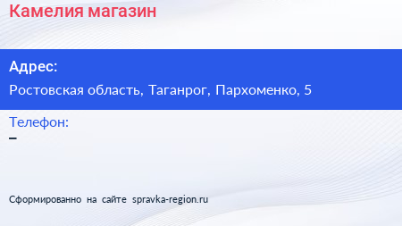 Камелия, магазин по адресу Ростовская область, Таганрог, Пархоменко, 5 в дальнейшем Организация, размещена в следующих категориях: