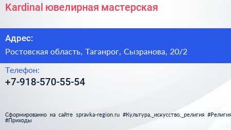 Kardinal, ювелирная мастерская по адресу Ростовская область, Таганрог, Сызранова, 20/2 в дальнейшем Организация, размещена в следующих категориях: