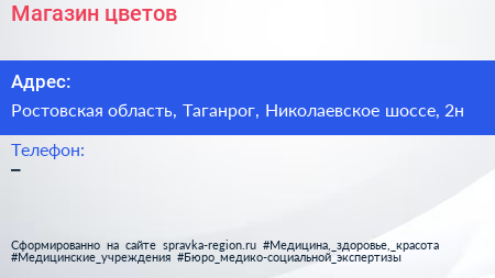 Магазин цветов по адресу Ростовская область, Таганрог, Николаевское шоссе, 2н в дальнейшем Организация, размещена в следующих категориях: