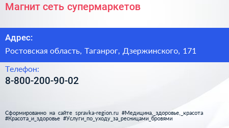 Магнит, сеть супермаркетов по адресу Ростовская область, Таганрог, Дзержинского, 171 в дальнейшем Организация, размещена в следующих категориях: