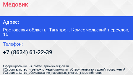 Для связи с организацией воспользуйтесь номером телефона: +7 (8634) 61-22-39. Ежедневно с 08:00 до 16:00, вы можете обратиться в эту организацию.