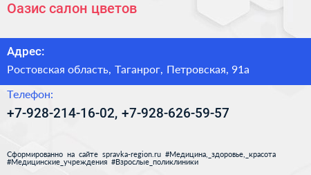 Оазис, салон цветов по адресу Ростовская область, Таганрог, Петровская, 91а в дальнейшем Организация, размещена в следующих категориях: