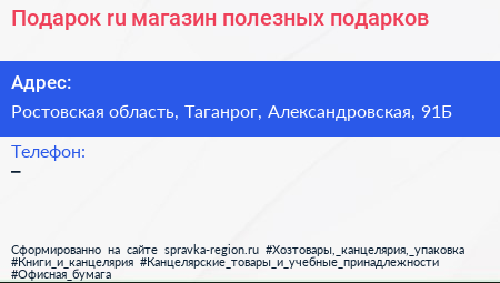 Подарок.ru, магазин полезных подарков по адресу Ростовская область, Таганрог, Александровская, 91Б в дальнейшем Организация, размещена в следующих категориях: