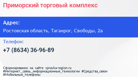 Приморский, торговый комплекс по адресу Ростовская область, Таганрог, Свободы, 2а в дальнейшем Организация, размещена в следующих категориях: