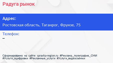 Радуга, рынок по адресу Ростовская область, Таганрог, Фрунзе, 75 в дальнейшем Организация, размещена в следующих категориях: