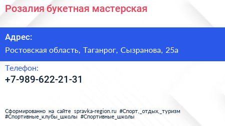 Розалия, букетная мастерская по адресу Ростовская область, Таганрог, Сызранова, 25а в дальнейшем Организация, размещена в следующих категориях: