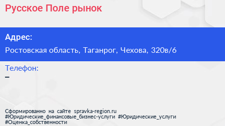 Русское Поле, рынок по адресу Ростовская область, Таганрог, Чехова, 320в/6 в дальнейшем Организация, размещена в следующих категориях:
