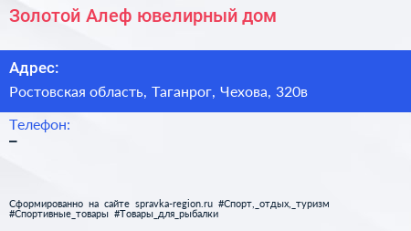 Золотой Алеф, ювелирный дом по адресу Ростовская область, Таганрог, Чехова, 320в в дальнейшем Организация, размещена в следующих категориях: