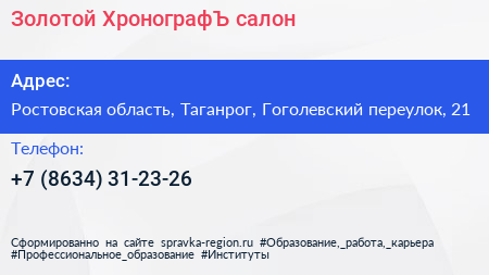 Золотой ХронографЪ, салон по адресу Ростовская область, Таганрог, Гоголевский переулок, 21 в дальнейшем Организация, размещена в следующих категориях: