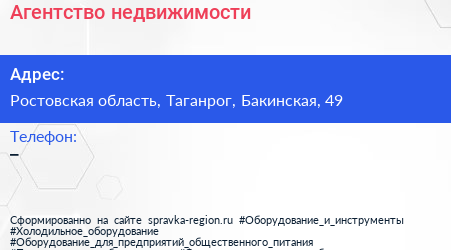 Агентство недвижимости по адресу Ростовская область, Таганрог, Бакинская, 49 в дальнейшем Организация, размещена в следующих категориях: