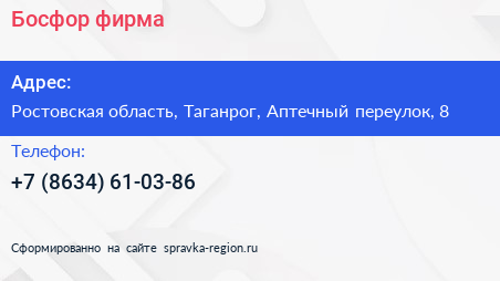 Босфор, фирма по адресу Ростовская область, Таганрог, Аптечный переулок, 8 в дальнейшем Организация, размещена в следующих категориях: