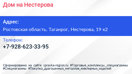 Дом на Нестерова по адресу Ростовская область, Таганрог, Нестерова, 19 к2 в дальнейшем Организация, размещена в следующих категориях: