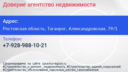 Доверие, агентство недвижимости по адресу Ростовская область, Таганрог, Александровская, 79/1 в дальнейшем Организация, размещена в следующих категориях: