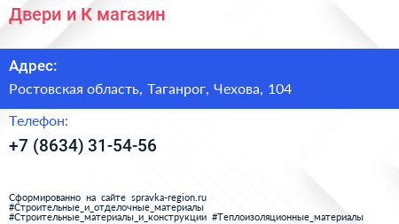 Двери и К, магазин по адресу Ростовская область, Таганрог, Чехова, 104 в дальнейшем Организация, размещена в следующих категориях: