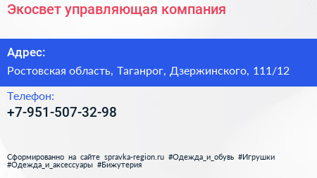 Экосвет, управляющая компания по адресу Ростовская область, Таганрог, Дзержинского, 111/12 в дальнейшем Организация, размещена в следующих категориях:
