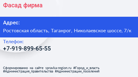 Фасад, фирма по адресу Ростовская область, Таганрог, Николаевское шоссе, 7/к в дальнейшем Организация, размещена в следующих категориях:
