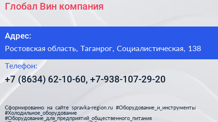 Глобал Вин, компания по адресу Ростовская область, Таганрог, Социалистическая, 138 в дальнейшем Организация, размещена в следующих категориях: