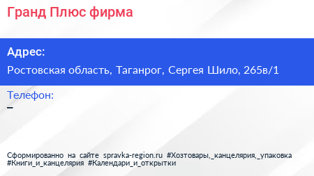 Гранд Плюс, фирма по адресу Ростовская область, Таганрог, Сергея Шило, 265в/1 в дальнейшем Организация, размещена в следующих категориях: