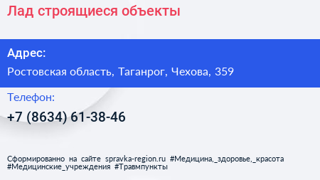 Лад, строящиеся объекты по адресу Ростовская область, Таганрог, Чехова, 359 в дальнейшем Организация, размещена в следующих категориях: