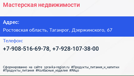 Мастерская недвижимости по адресу Ростовская область, Таганрог, Дзержинского, 67 в дальнейшем Организация, размещена в следующих категориях: