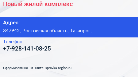 Новый, жилой комплекс по адресу 347942, Ростовская область, Таганрог, в дальнейшем Организация, размещена в следующих категориях: