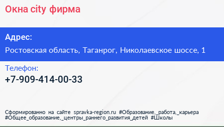 Окна-city, фирма по адресу Ростовская область, Таганрог, Николаевское шоссе, 1 в дальнейшем Организация, размещена в следующих категориях: