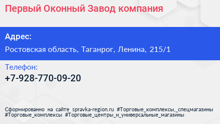 Первый Оконный Завод, компания по адресу Ростовская область, Таганрог, Ленина, 215/1 в дальнейшем Организация, размещена в следующих категориях: