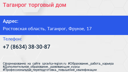 Таганрог, торговый дом по адресу Ростовская область, Таганрог, Фрунзе, 17 в дальнейшем Организация, размещена в следующих категориях: