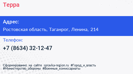 Терра+ по адресу Ростовская область, Таганрог, Ленина, 214 в дальнейшем Организация, размещена в следующих категориях: