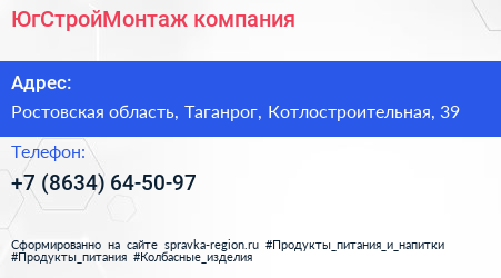 ЮгСтройМонтаж, компания по адресу Ростовская область, Таганрог, Котлостроительная, 39 в дальнейшем Организация, размещена в следующих категориях: