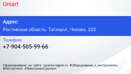 Uniart по адресу Ростовская область, Таганрог, Чехова, 222 в дальнейшем Организация, размещена в следующих категориях: