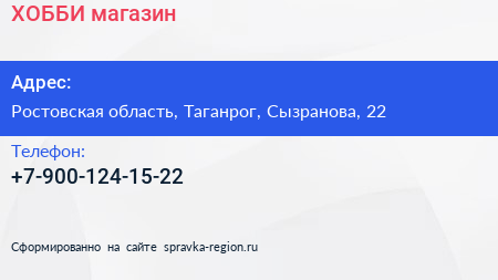 ХОББИ, магазин по адресу Ростовская область, Таганрог, Сызранова, 22 в дальнейшем Организация, размещена в следующих категориях: