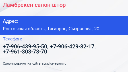 Ламбрекен, салон штор по адресу Ростовская область, Таганрог, Сызранова, 20 в дальнейшем Организация, размещена в следующих категориях: