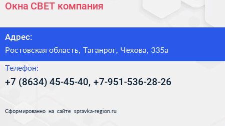 Окна СВЕТ, компания по адресу Ростовская область, Таганрог, Чехова, 335а в дальнейшем Организация, размещена в следующих категориях: