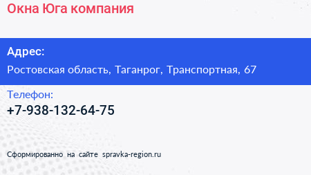 Окна Юга, компания по адресу Ростовская область, Таганрог, Транспортная, 67 в дальнейшем Организация, размещена в следующих категориях: