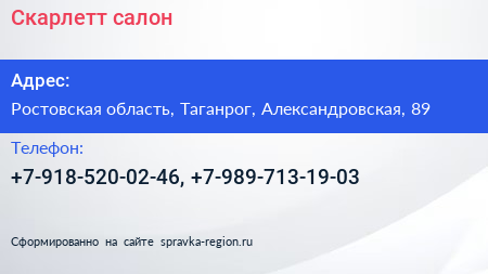Скарлетт, салон по адресу Ростовская область, Таганрог, Александровская, 89 в дальнейшем Организация, размещена в следующих категориях: