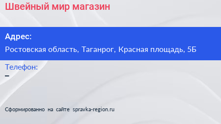 Швейный мир, магазин по адресу Ростовская область, Таганрог, Красная площадь, 5Б в дальнейшем Организация, размещена в следующих категориях:
