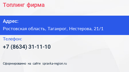 Топлинг, фирма по адресу Ростовская область, Таганрог, Нестерова, 21/1 в дальнейшем Организация, размещена в следующих категориях: