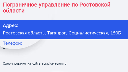 Пограничное управление по Ростовской области по адресу Ростовская область, Таганрог, Социалистическая, 150Б в дальнейшем Организация, размещена в следующих категориях: