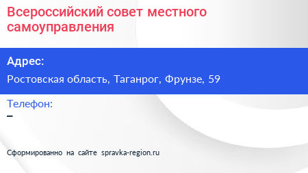 Всероссийский совет местного самоуправления по адресу Ростовская область, Таганрог, Фрунзе, 59 в дальнейшем Организация, размещена в следующих категориях: