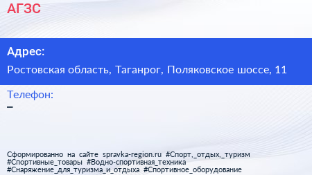 АГЗС по адресу Ростовская область, Таганрог, Поляковское шоссе, 11 в дальнейшем Организация, размещена в следующих категориях: