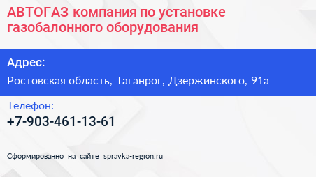 АВТОГАЗ, компания по установке газобалонного оборудования по адресу Ростовская область, Таганрог, Дзержинского, 91а в дальнейшем Организация, размещена в следующих категориях: