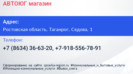 АВТОЮГ, магазин по адресу Ростовская область, Таганрог, Седова, 1 в дальнейшем Организация, размещена в следующих категориях: