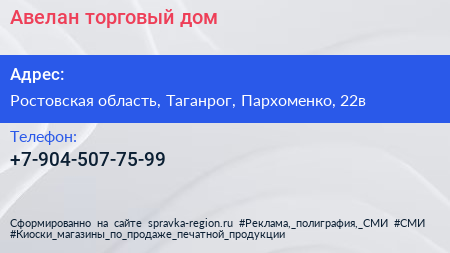 Авелан, торговый дом по адресу Ростовская область, Таганрог, Пархоменко, 22в в дальнейшем Организация, размещена в следующих категориях: