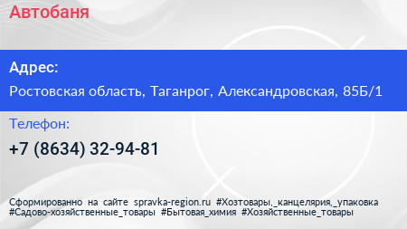 Автобаня по адресу Ростовская область, Таганрог, Александровская, 85Б/1 в дальнейшем Организация, размещена в следующих категориях: