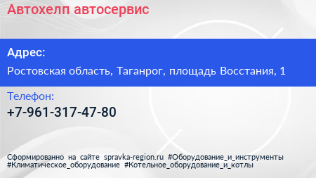 Автохелп, автосервис по адресу Ростовская область, Таганрог, площадь Восстания, 1 в дальнейшем Организация, размещена в следующих категориях: