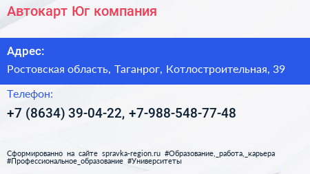 Автокарт-Юг, компания по адресу Ростовская область, Таганрог, Котлостроительная, 39 в дальнейшем Организация, размещена в следующих категориях: