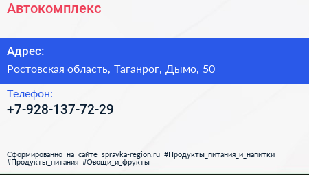Автокомплекс по адресу Ростовская область, Таганрог, Дымо, 50 в дальнейшем Организация, размещена в следующих категориях: