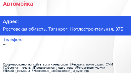 Автомойка по адресу Ростовская область, Таганрог, Котлостроительная, 37Б в дальнейшем Организация, размещена в следующих категориях: